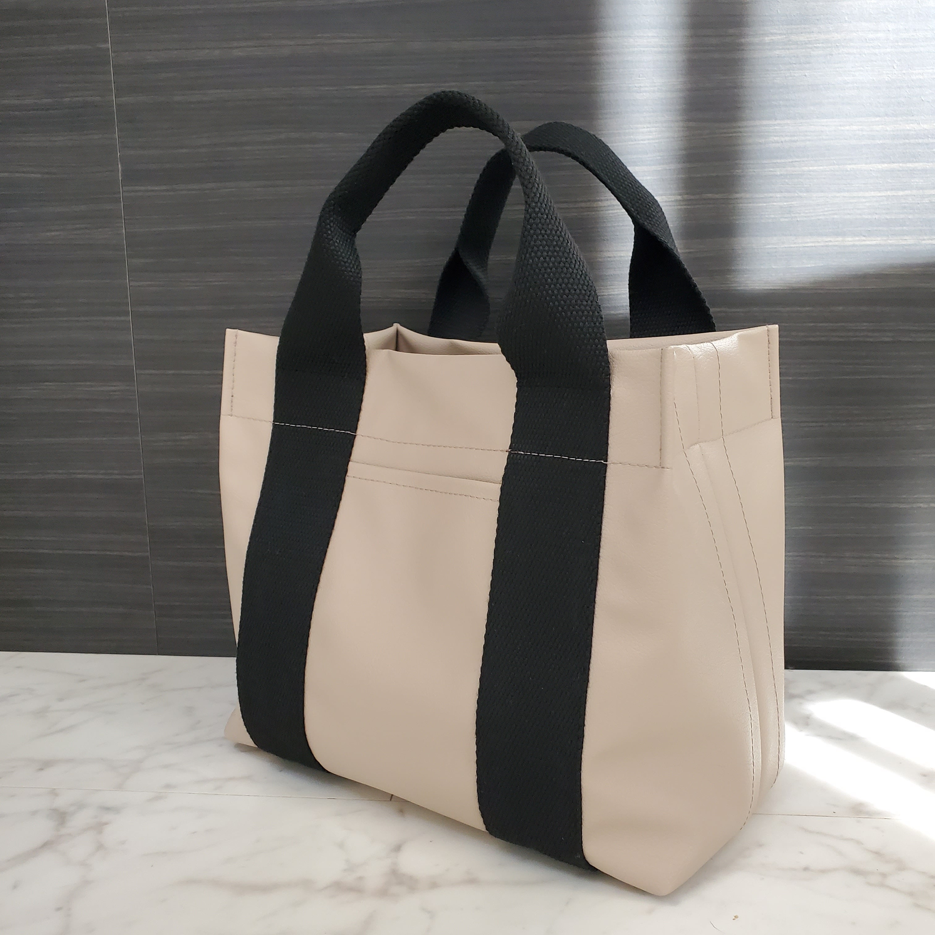 【1点限定 サンプル価格】[cube]フェイクレザーの四角いトートバッグ ハンドメイド