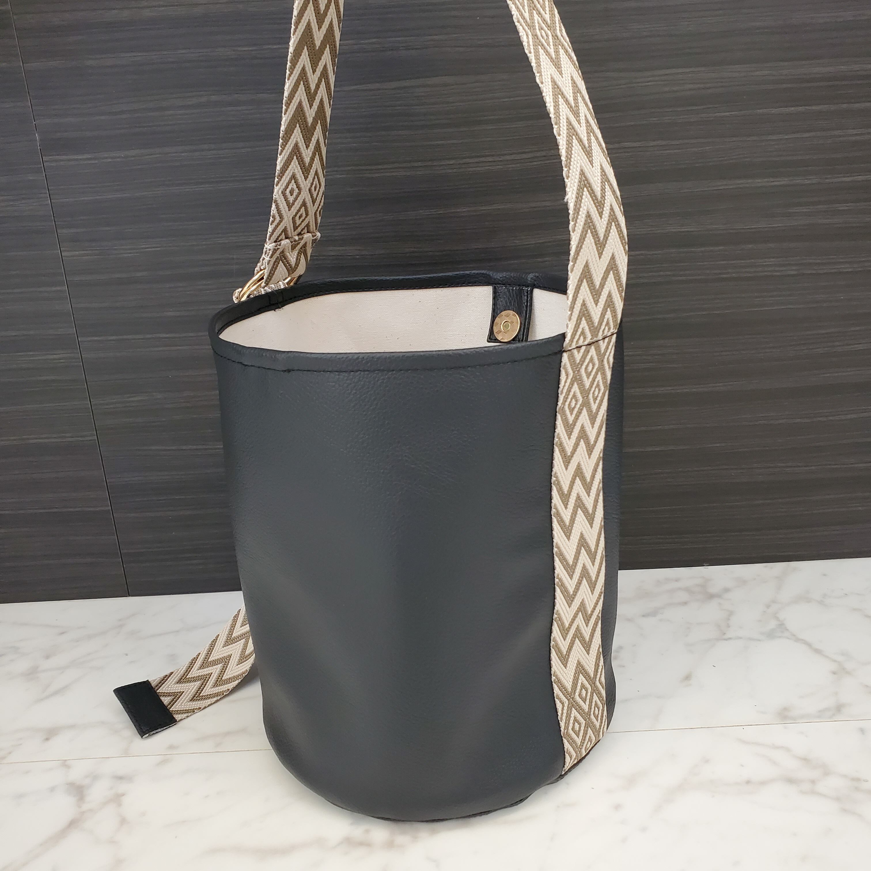 [Link bucket] フェイクレザーの丸底ショルダーバッグ 肩掛け 斜め掛け可能