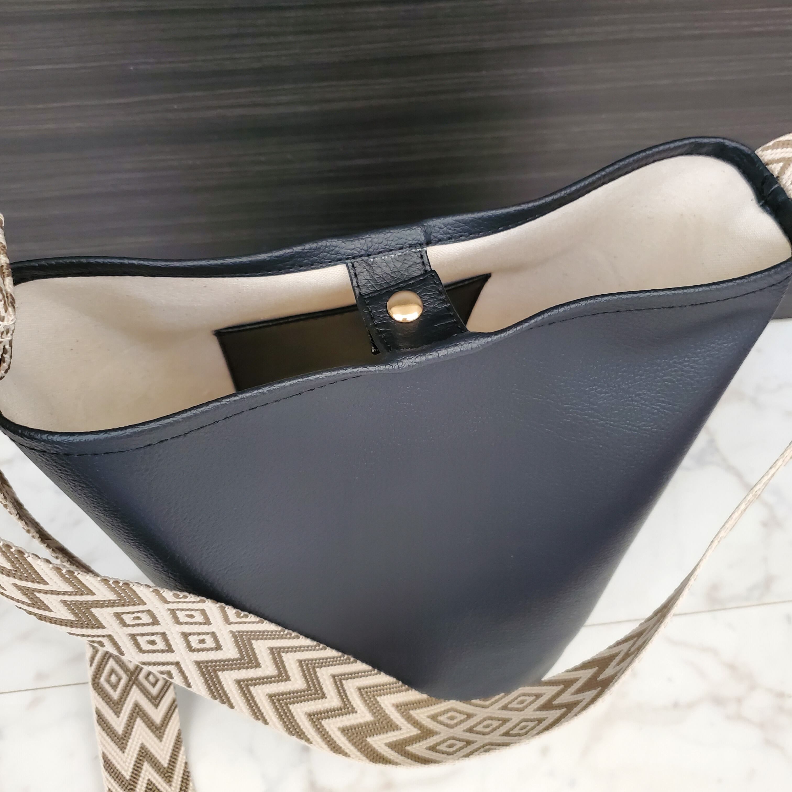 ショルダーバッグなので、肩にかけて手が空くスタイルが魅力的です。お出かけや通勤時にも最適です。