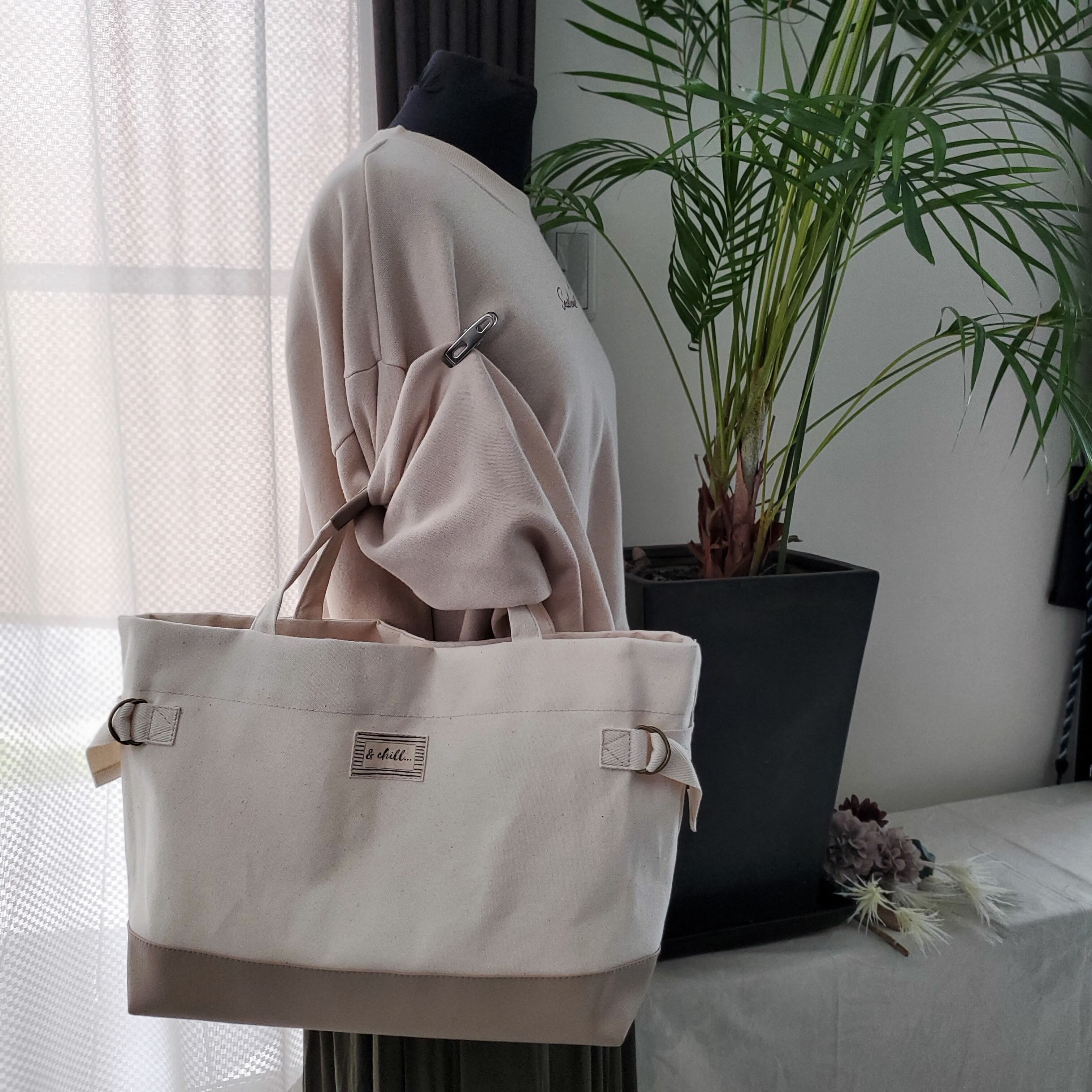 たくさんのときは定番のトートバッグの形にして大容量収納可能です。