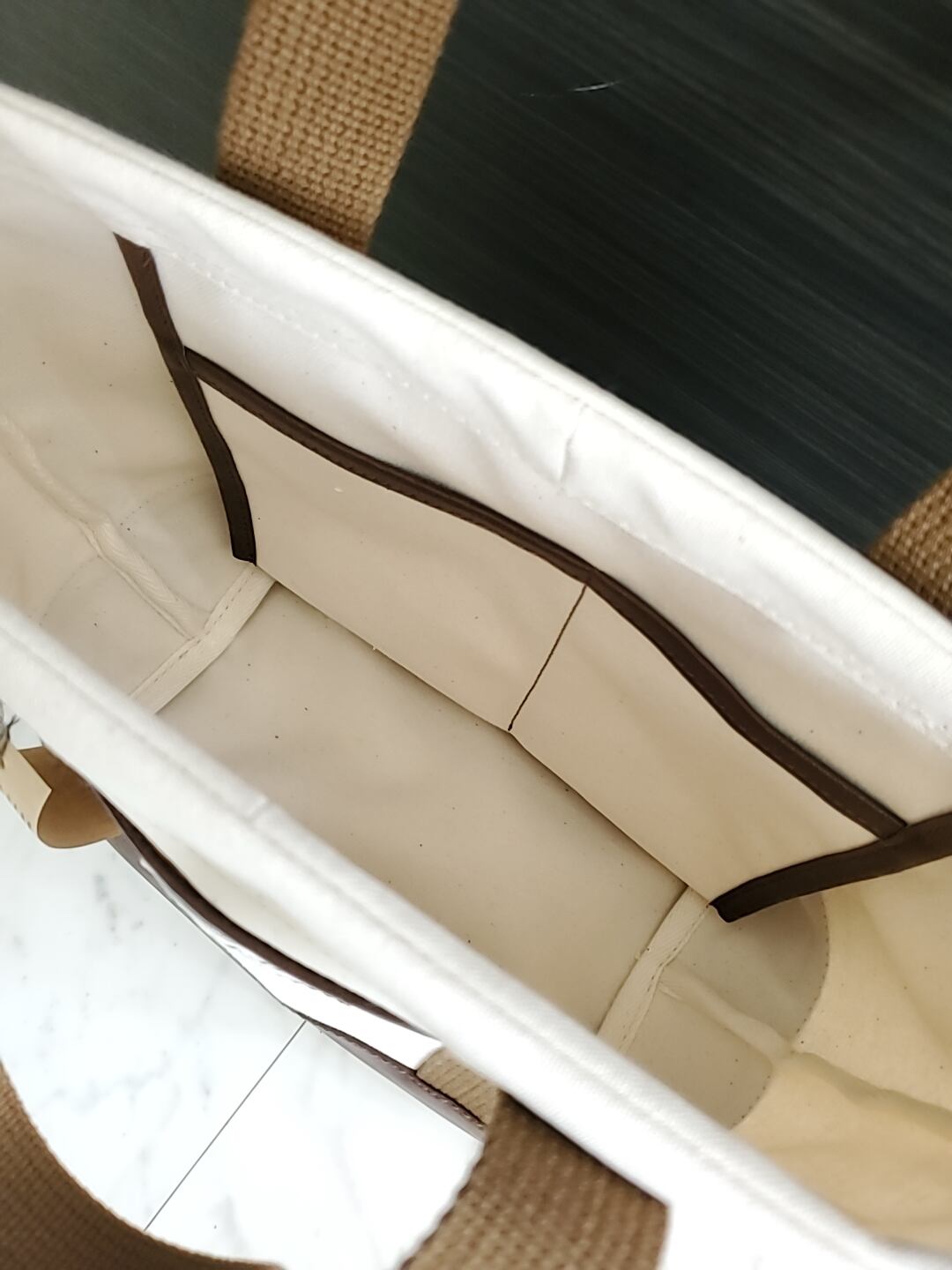外側も内側もポケットのふちどりは底マチと同じブラックです。