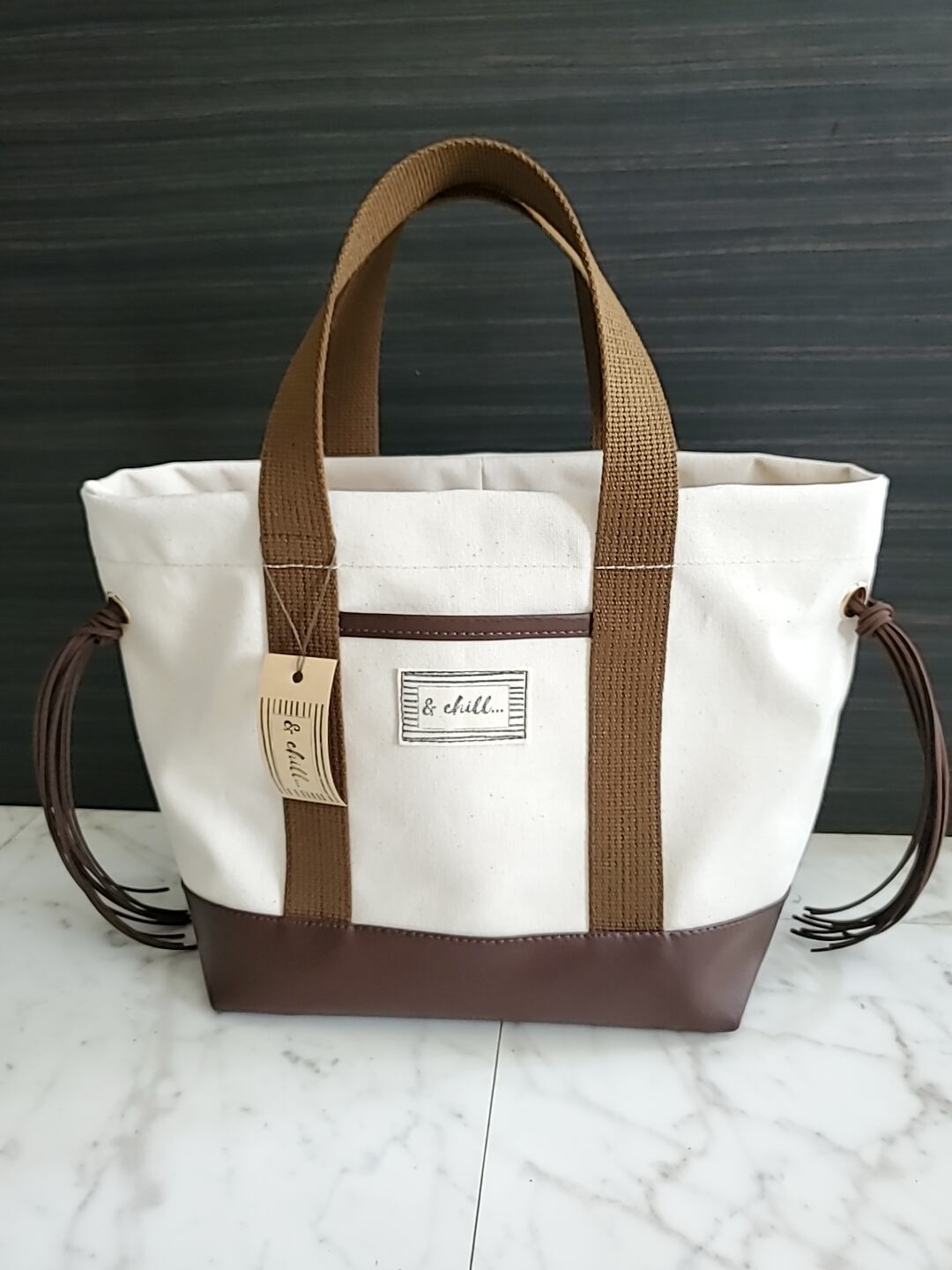 [Voyage] 帆布×フェイクレザーのタッセルトート(M) 富士金梅帆布