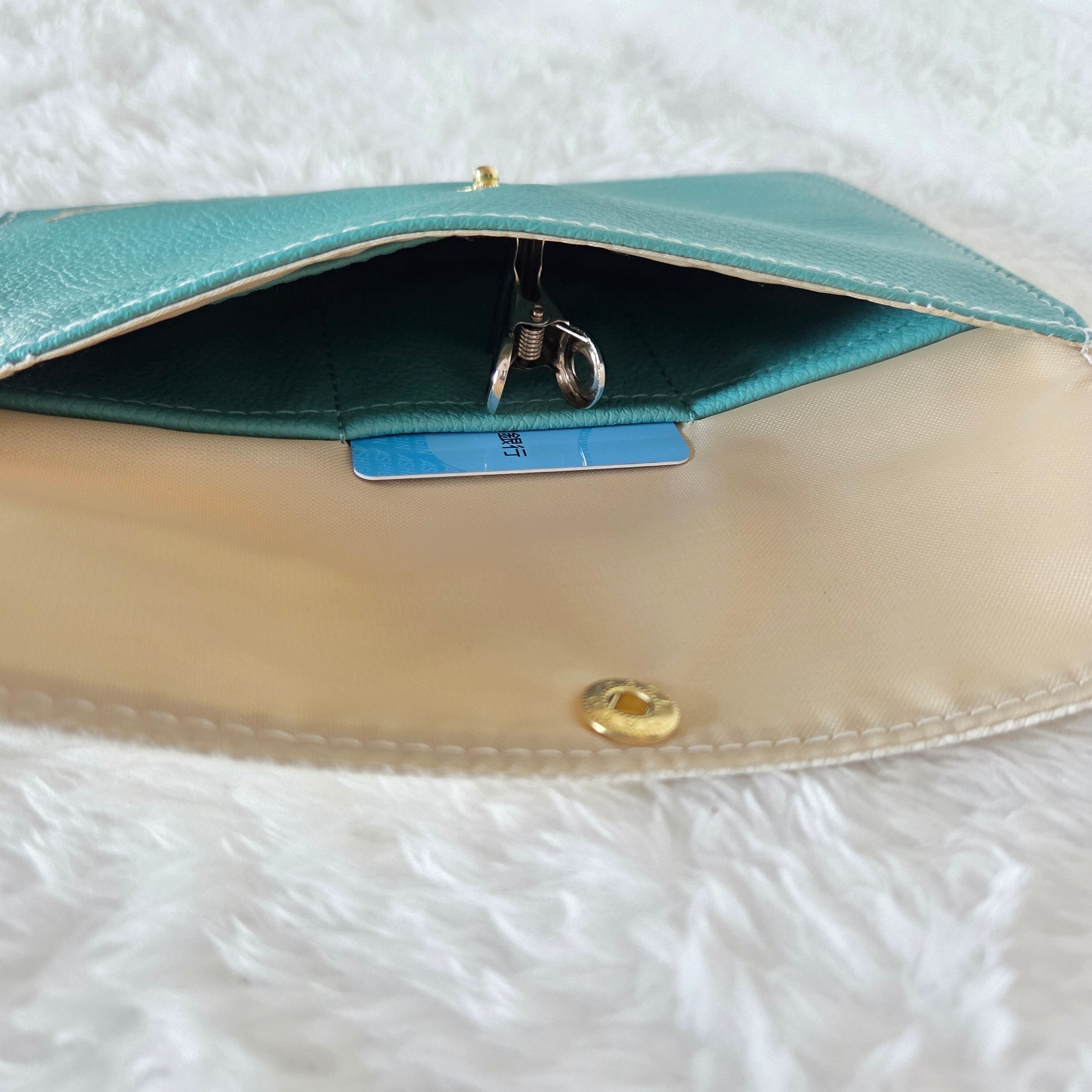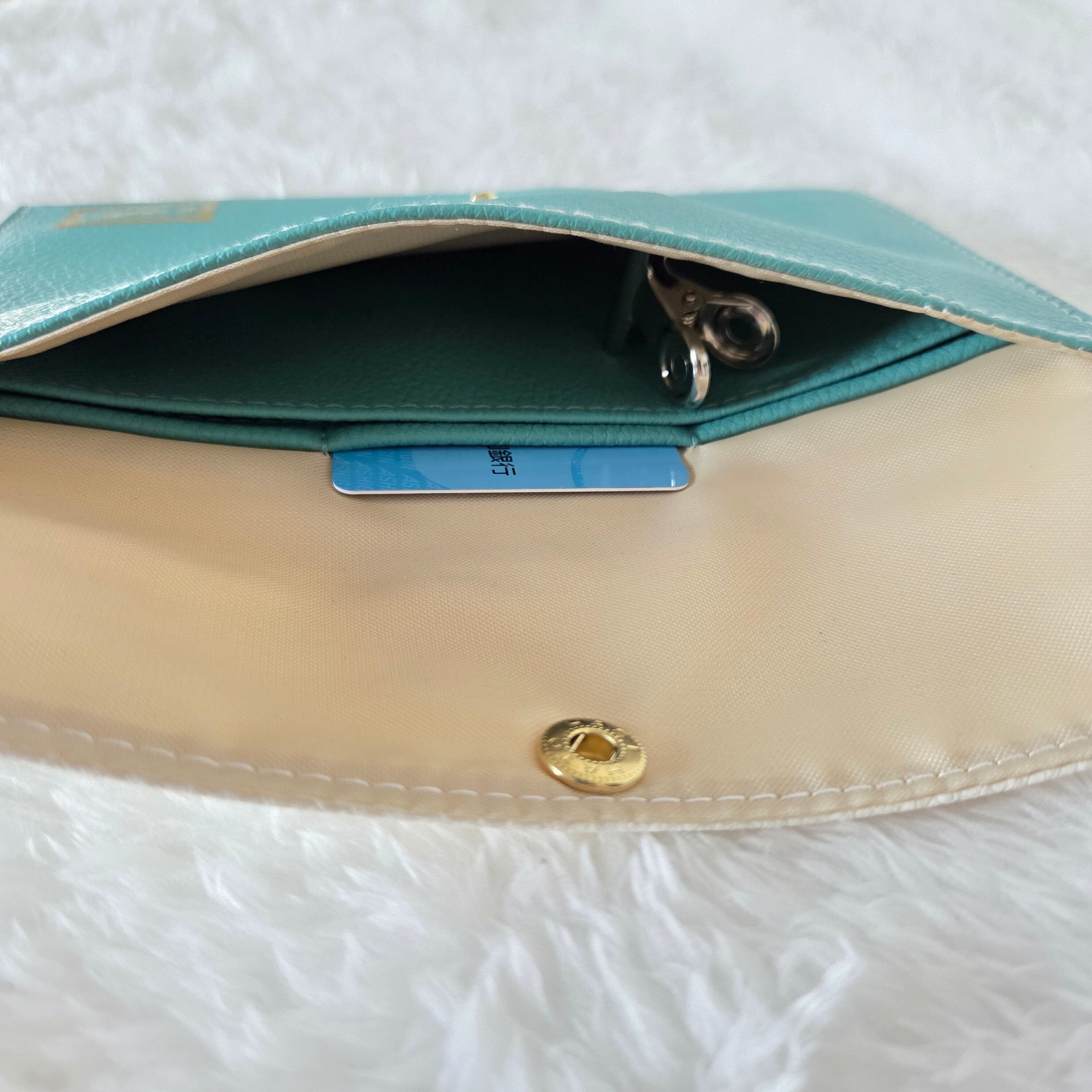 開閉はスナップボタン仕様で、取り出しもスムーズ。あなたの日常を少し便利に。