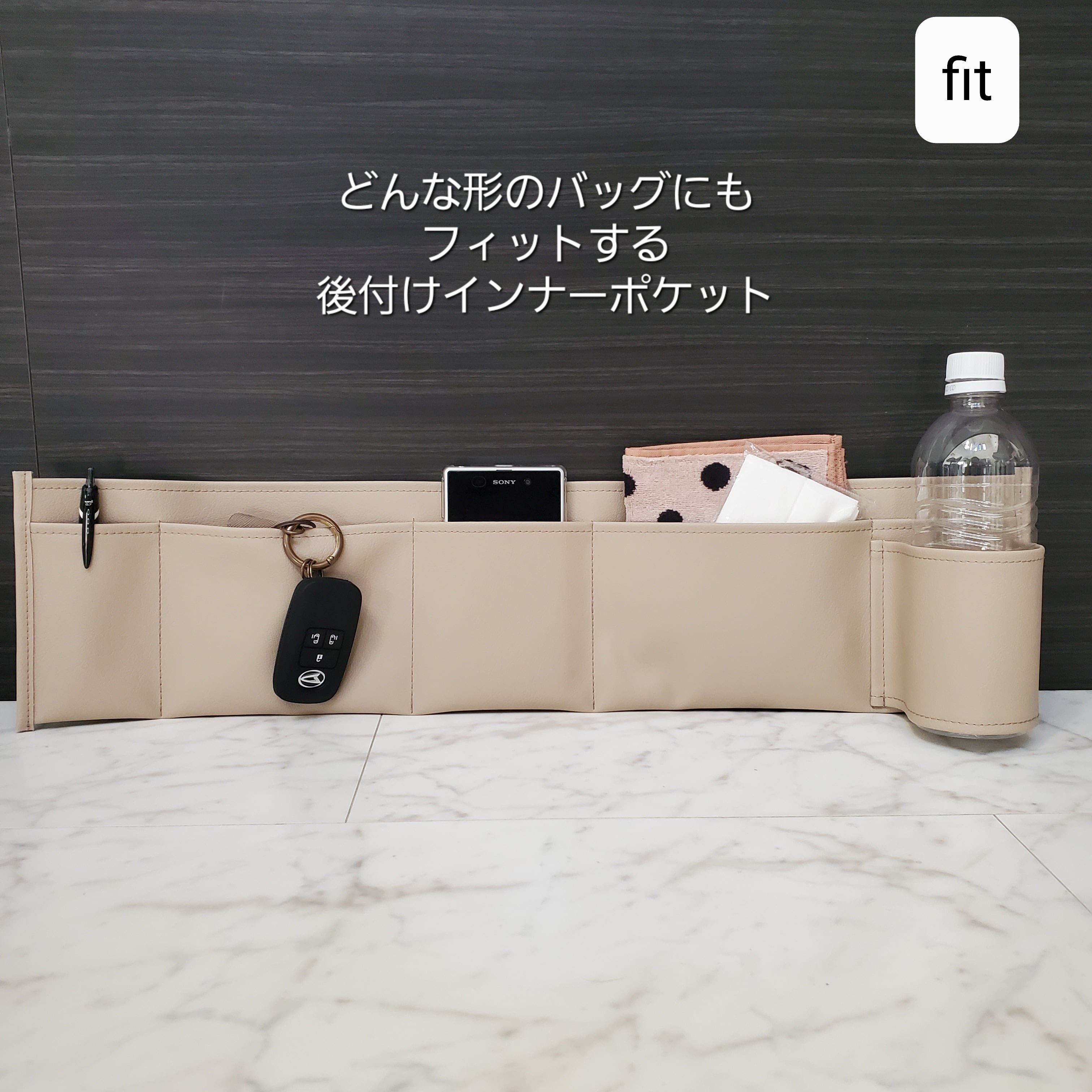 ◇アウトレット◇[fit レザー] 仕切りポケット どんな形のバッグにもフィットする後付けポケット バッグインバッグ